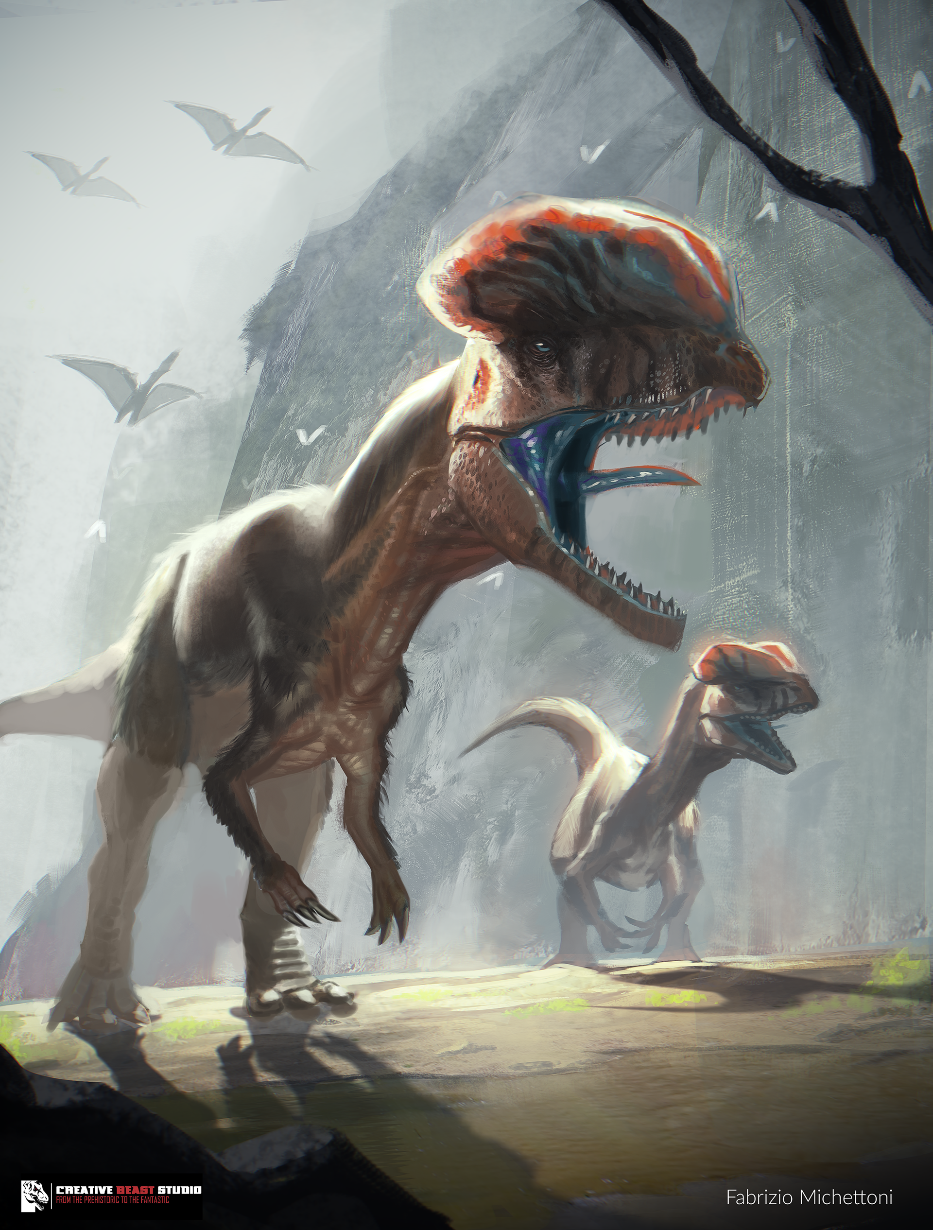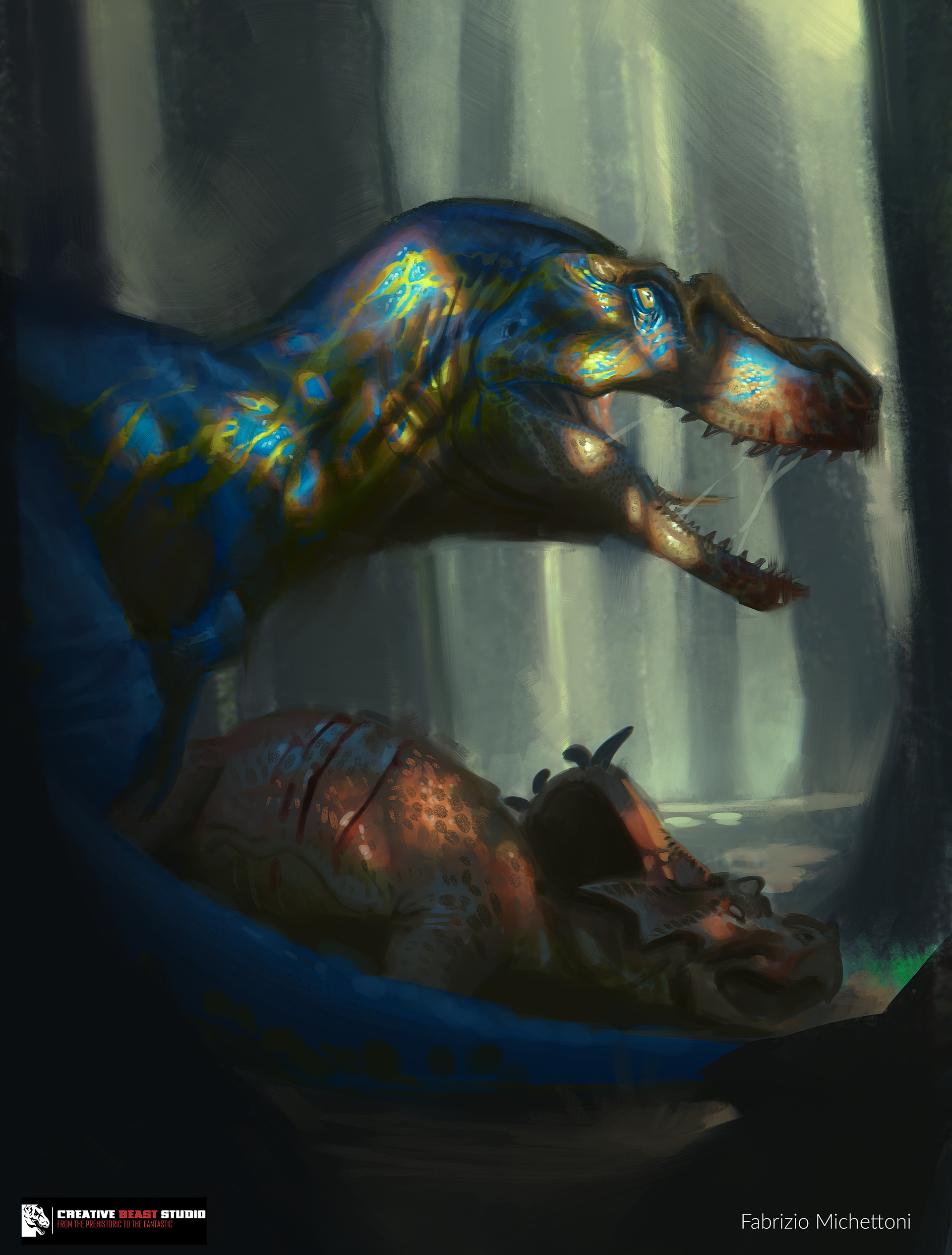 two card illustration made for a TCG created by Creative Beast Studio, it was a contest, the dilophosaurus (the one with the crest on the head) made it to the honorable mentions, with other 5 artist, very nice experience.